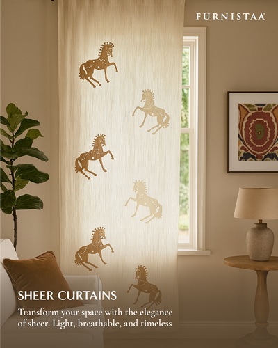 There’s a scintillating quality to sheer curtains- the way they play with sunlight, move with the breeze, and soften your interiors. During Diwali, sheers help balance the radiance of lamps and fairy lights, giving your home a soothing, golden glow.